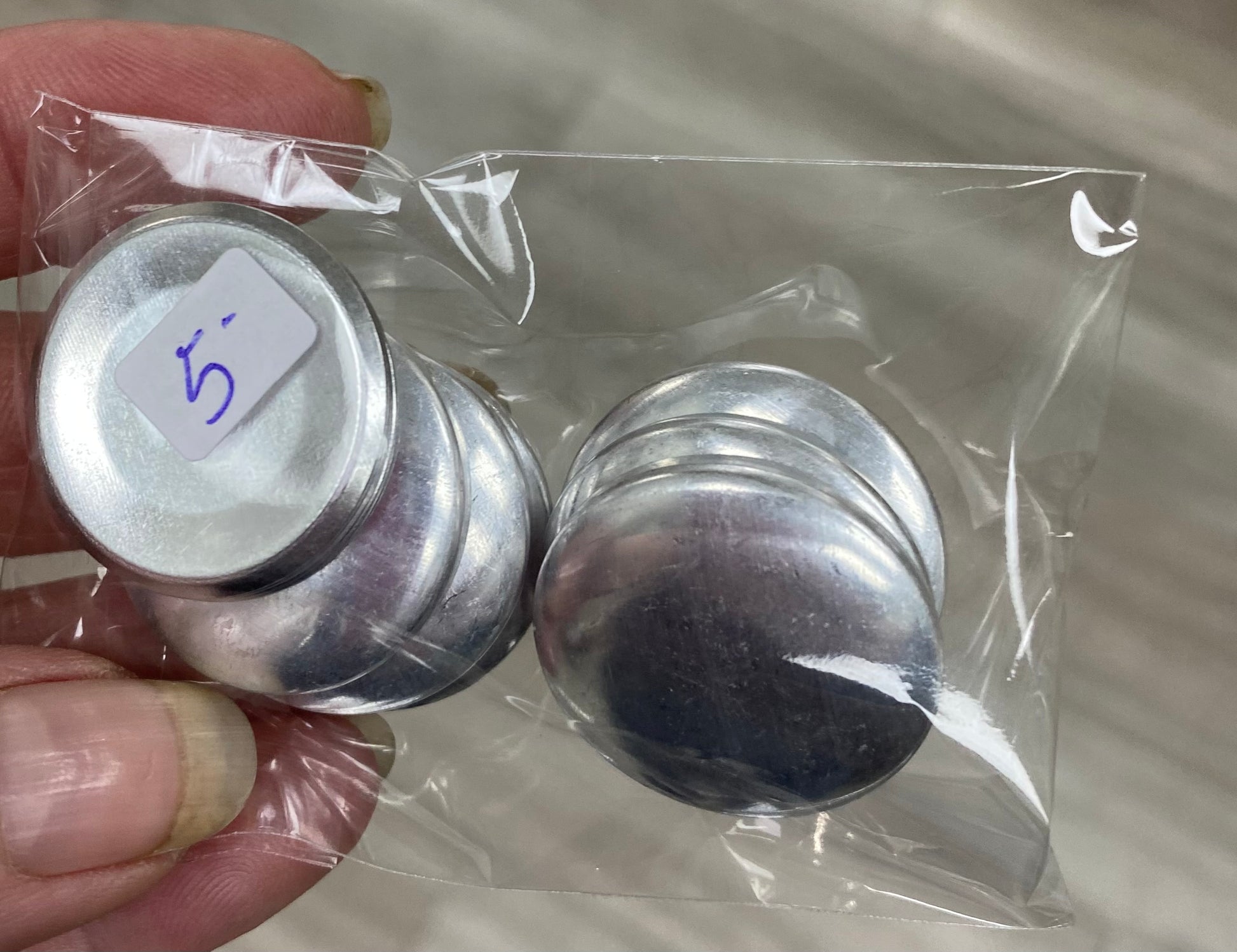 package of 6 button molds with flat back to create unique buttons for display on wood racks (available separately).