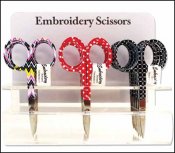 Sewing Notion pattern embroidery scissors-- buttons, and safety pin patterns.
