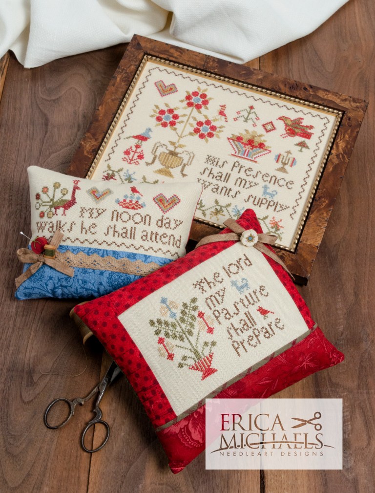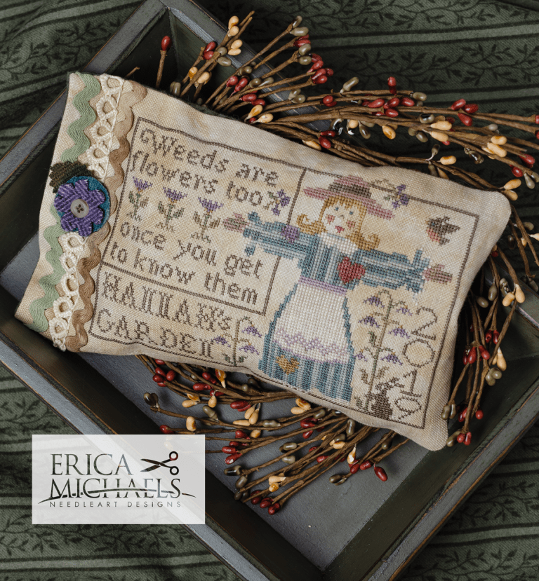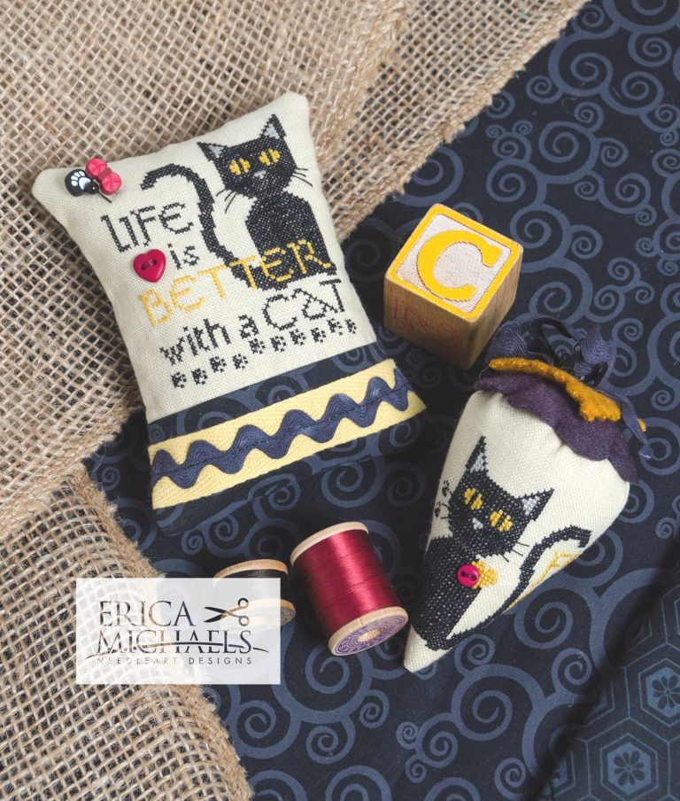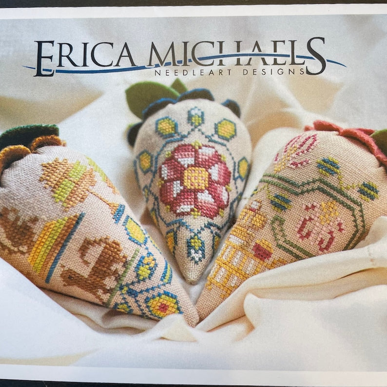 "Get your cross stitch on with Erica Michaels! Created by the talented Linda Stolz, these charts make stitching a breeze. Get ready to stitch up some serious fun! (Cross stitch skills not included.)"