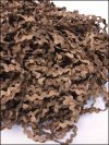100% cotton.  3 yards per package. Hand dyed trims for finishing. Please note that each fiber content accepts dye differently for the different shade variations between cotton chenille, polyester pompoms, rayon ribbon, and rick rack.