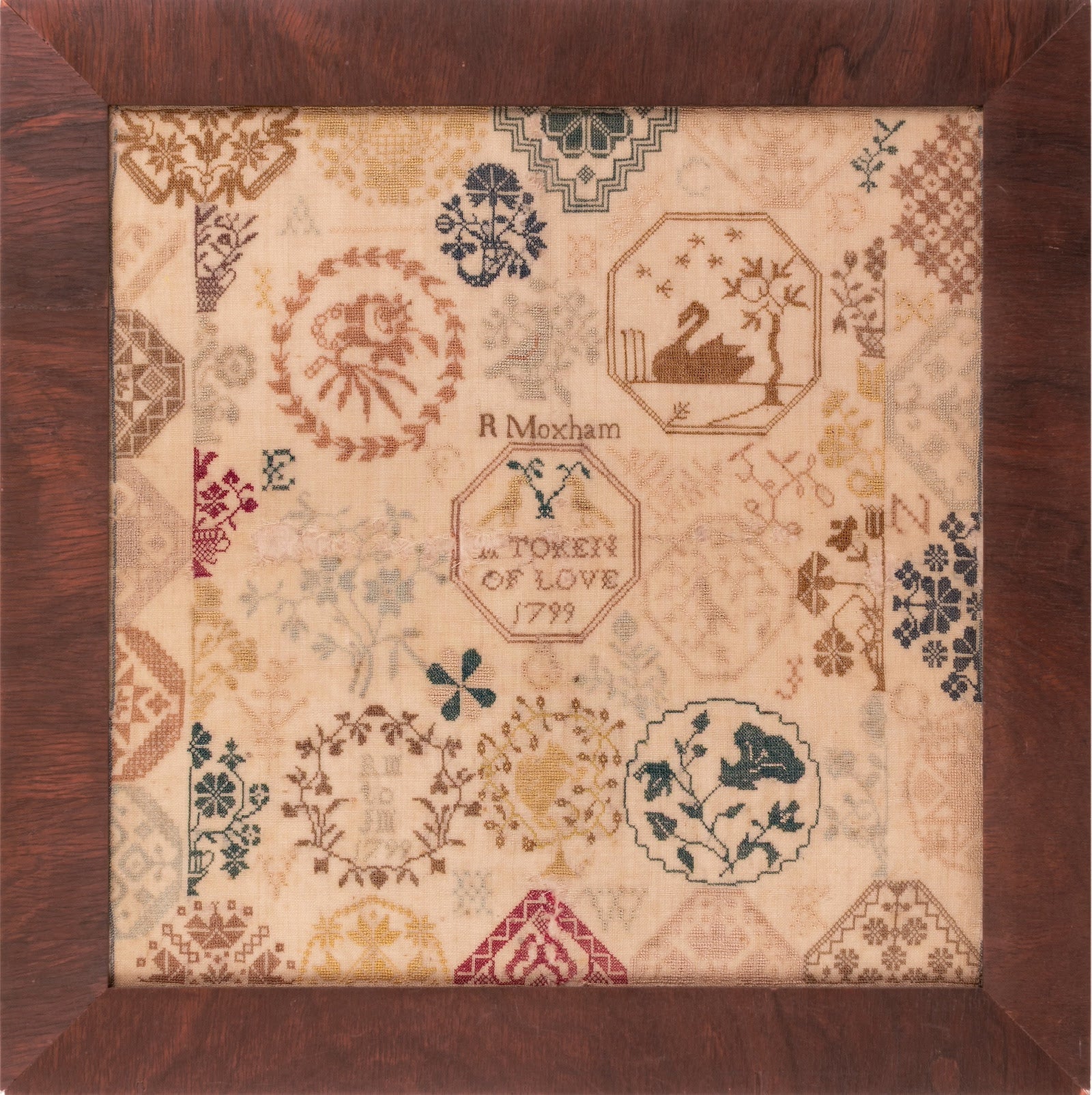 This is a wonderful Ackworth Sampler by Rachel Moxham wrought in 1799. Included in the sampler is an extensive history of when Rachel attended the Ackworth school, along with her brother and sister.