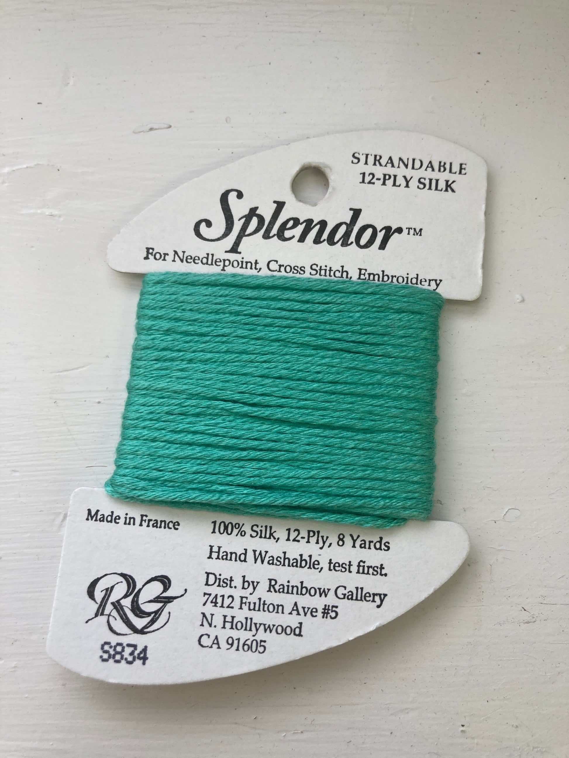A 12-ply silk that is composed of three 4-ply bundles twisted together. The twist of each individual strand is tighter than most silks making it easier to use. Many of the usual problems experienced with silk will not occur with Splendor. Anyone that stitches with cotton floss will have no problem with it. Dyed to match many of the Splendor colors are Splendor Silk Ribbon, Grandeur, Elegance, and Subtlety.