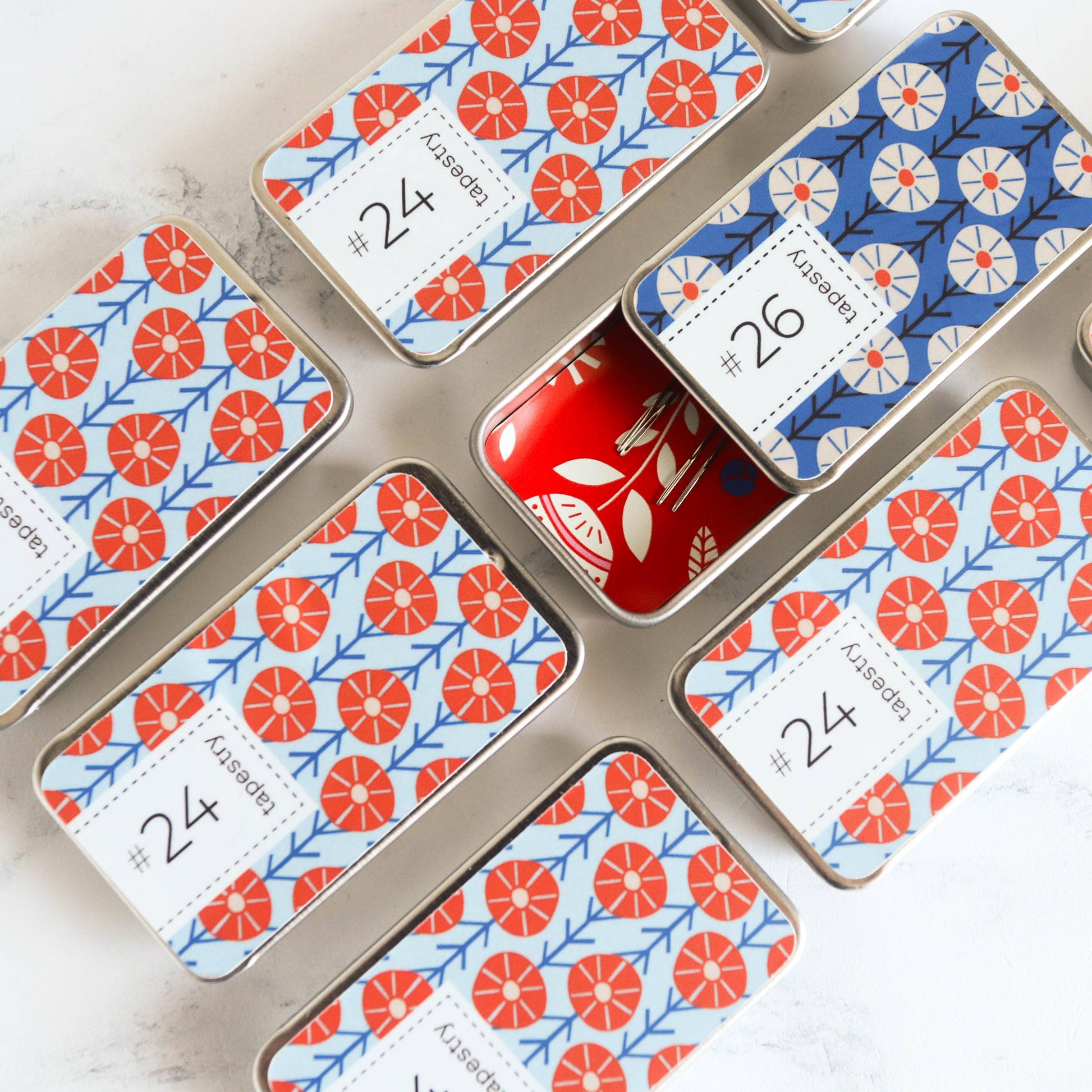 Stitched Modern - Magnetic Slide-Top Needle Tin With Cross Stitch Needles: Tapestry Size #26