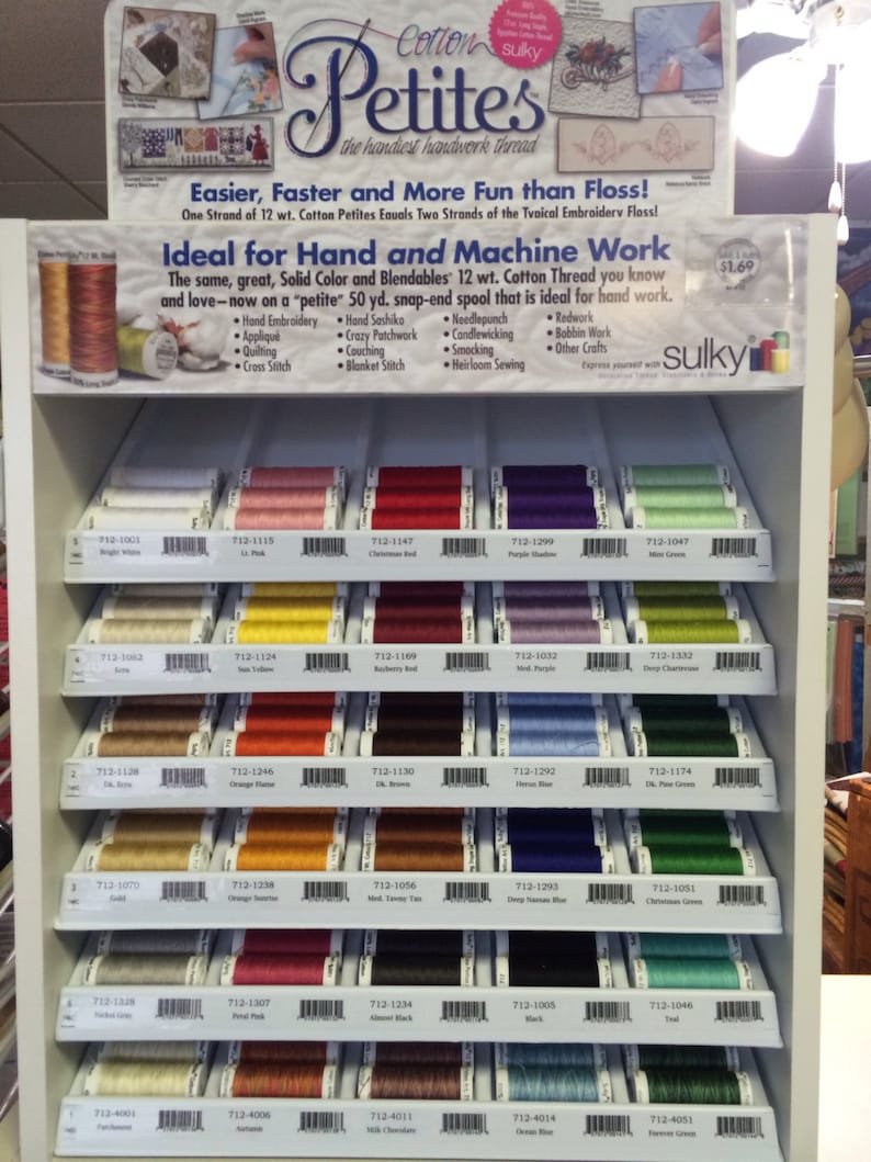 Overdyed floss, specialty threads, hand-picked fabrics, and rare patterns you won’t find in chain stores.