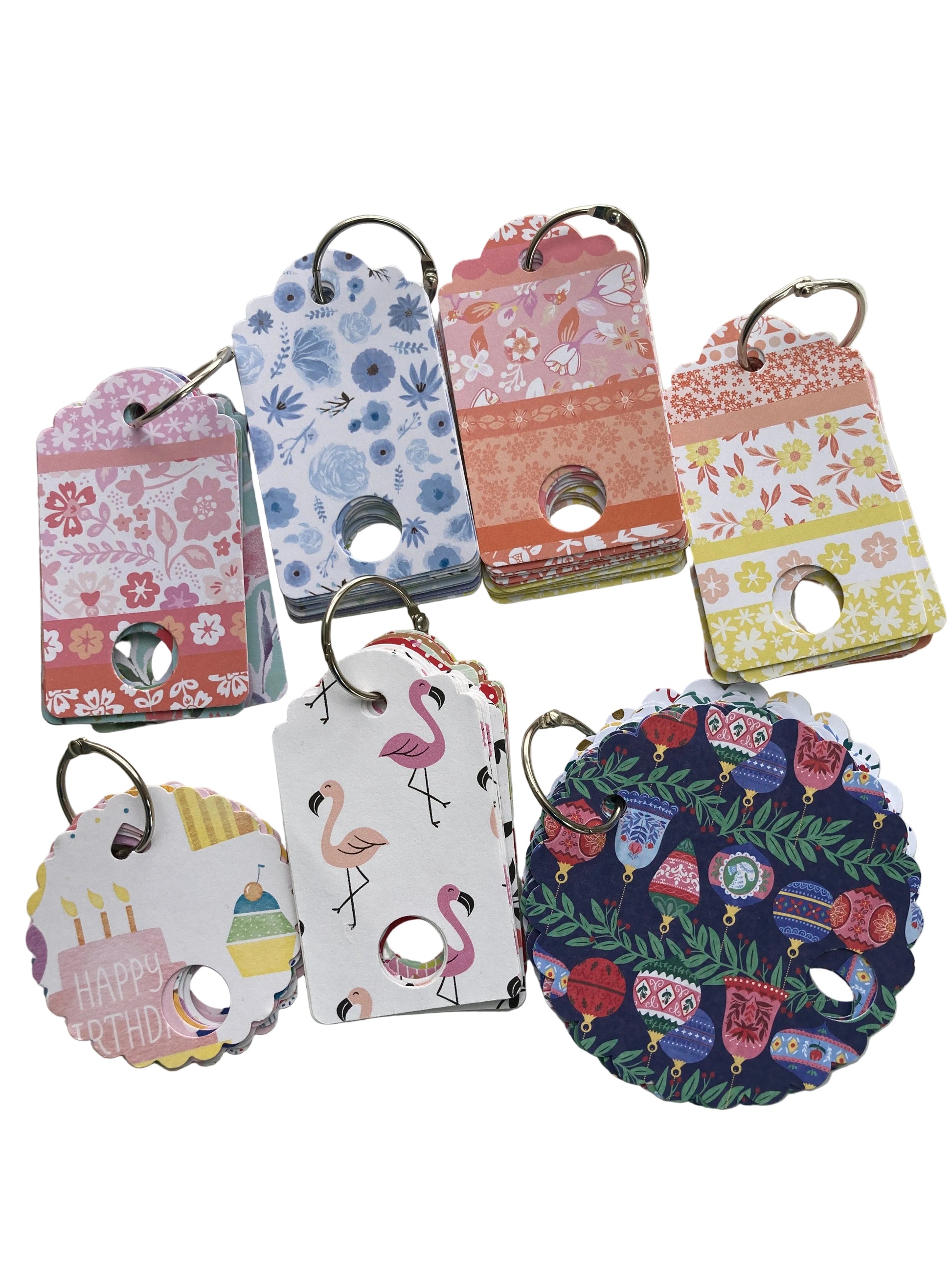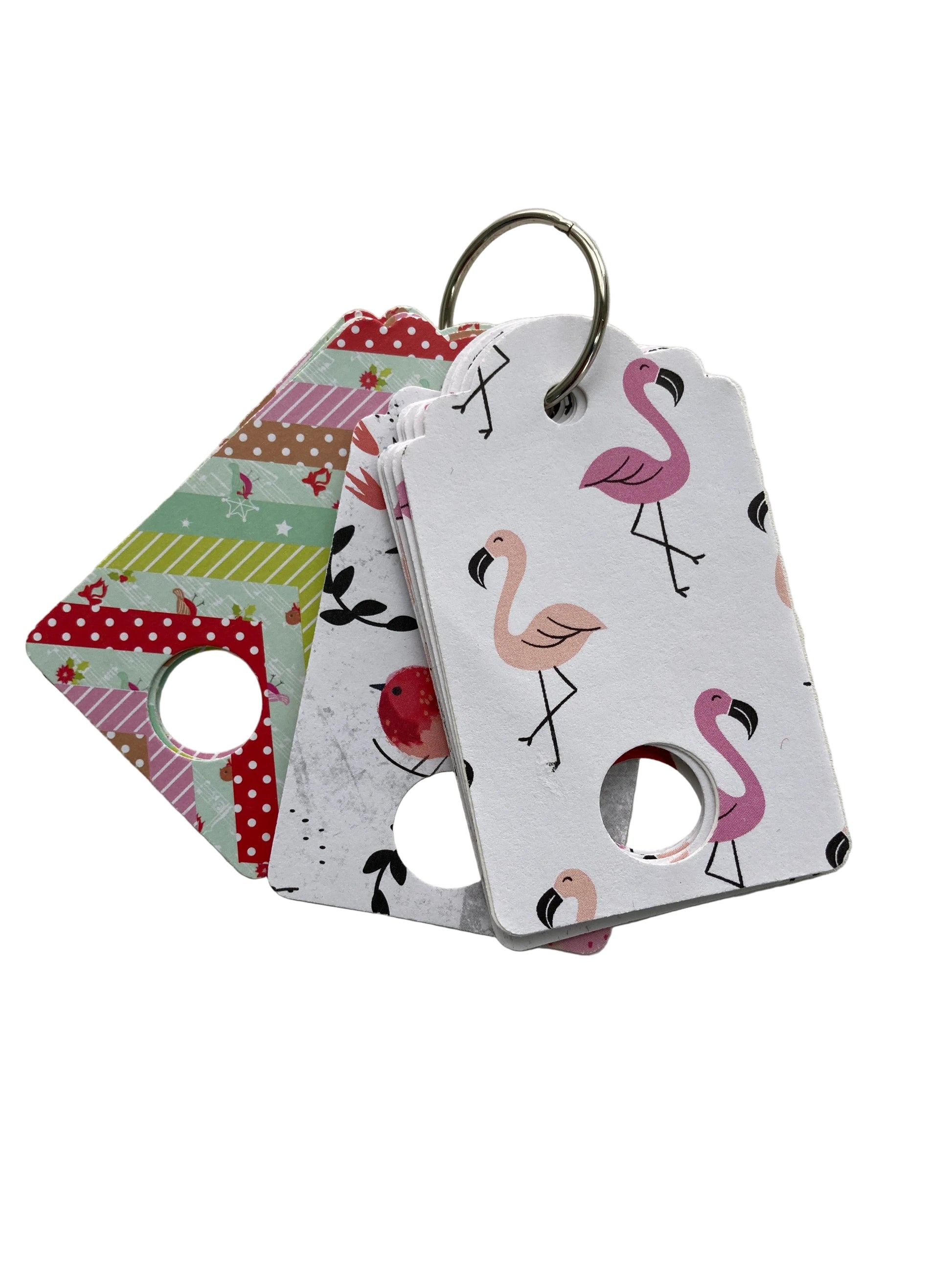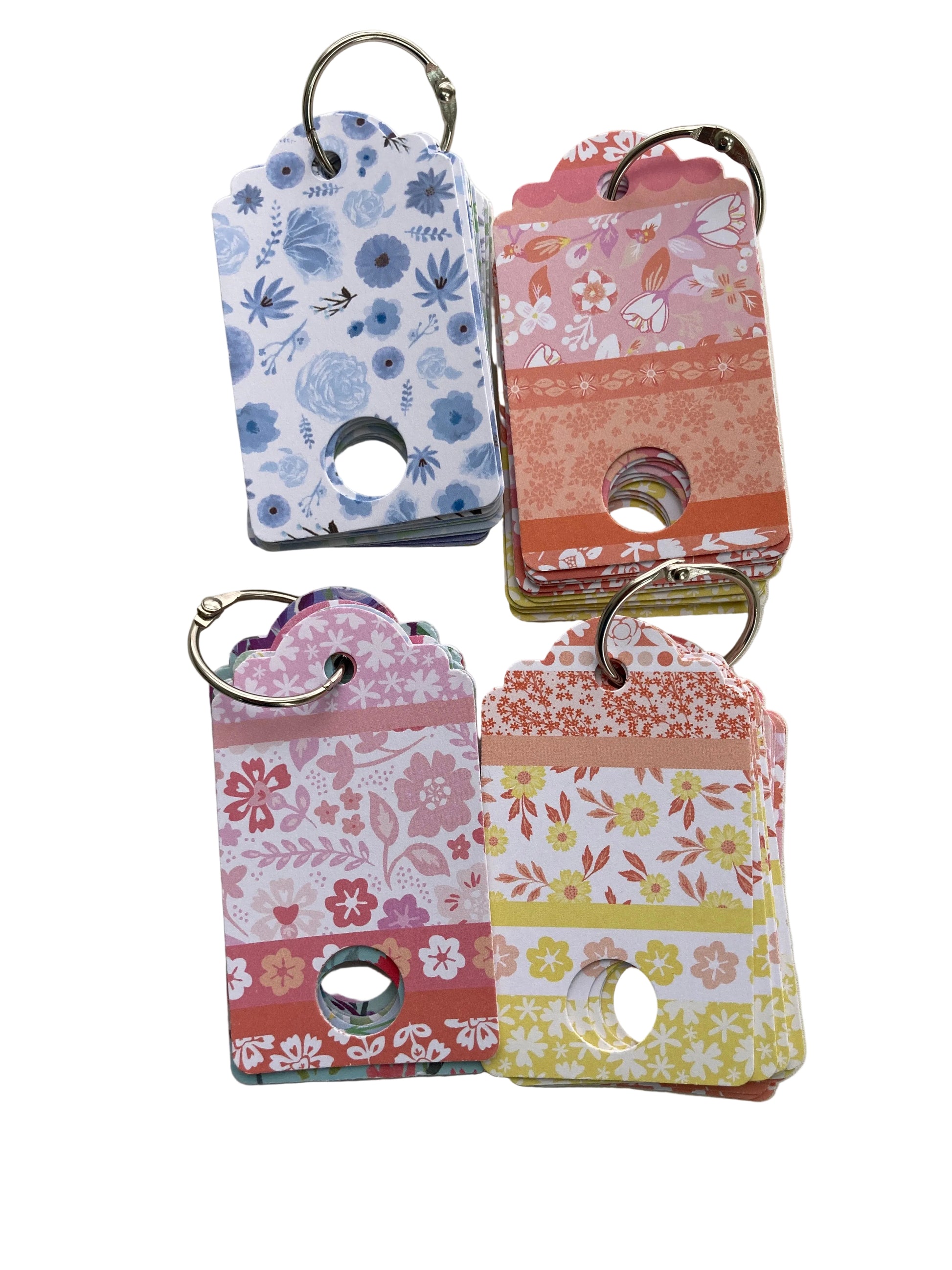 Beautiful cards to hold your floss on a 1 inch book ring. Back side is blank so you can write the details about your floss. When finished hang the rest on a coat hanger in your closet. Handmade by Local Artisan.